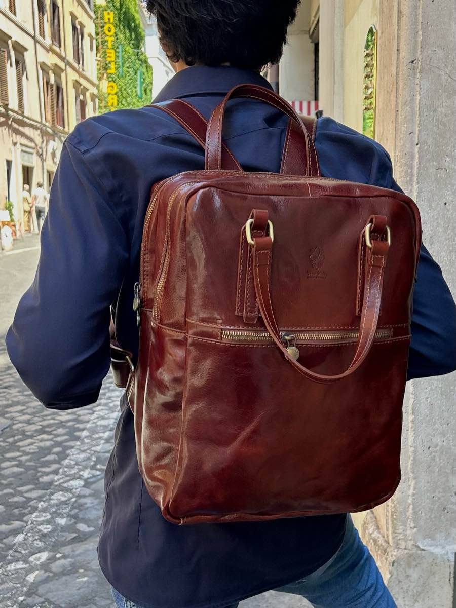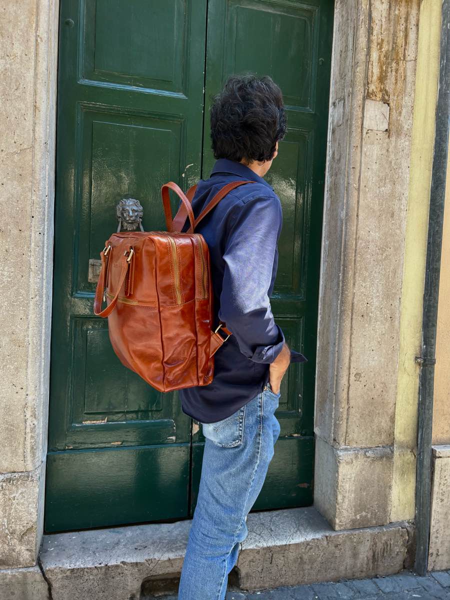 Handcrafted leather backpack, Made in Florence.