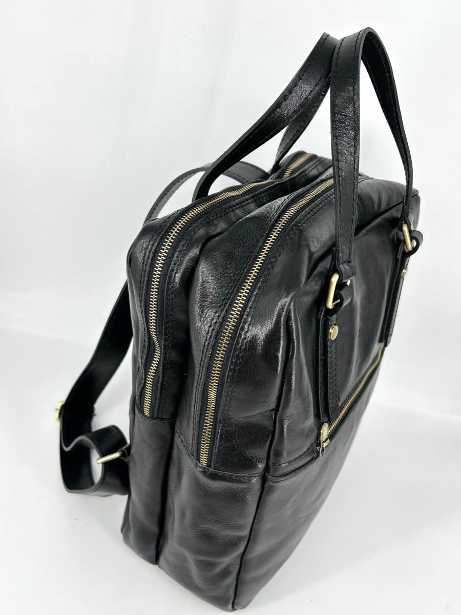 Handles and backpack straps, high-quality semi-gloss leather. Perfect for work and travel.