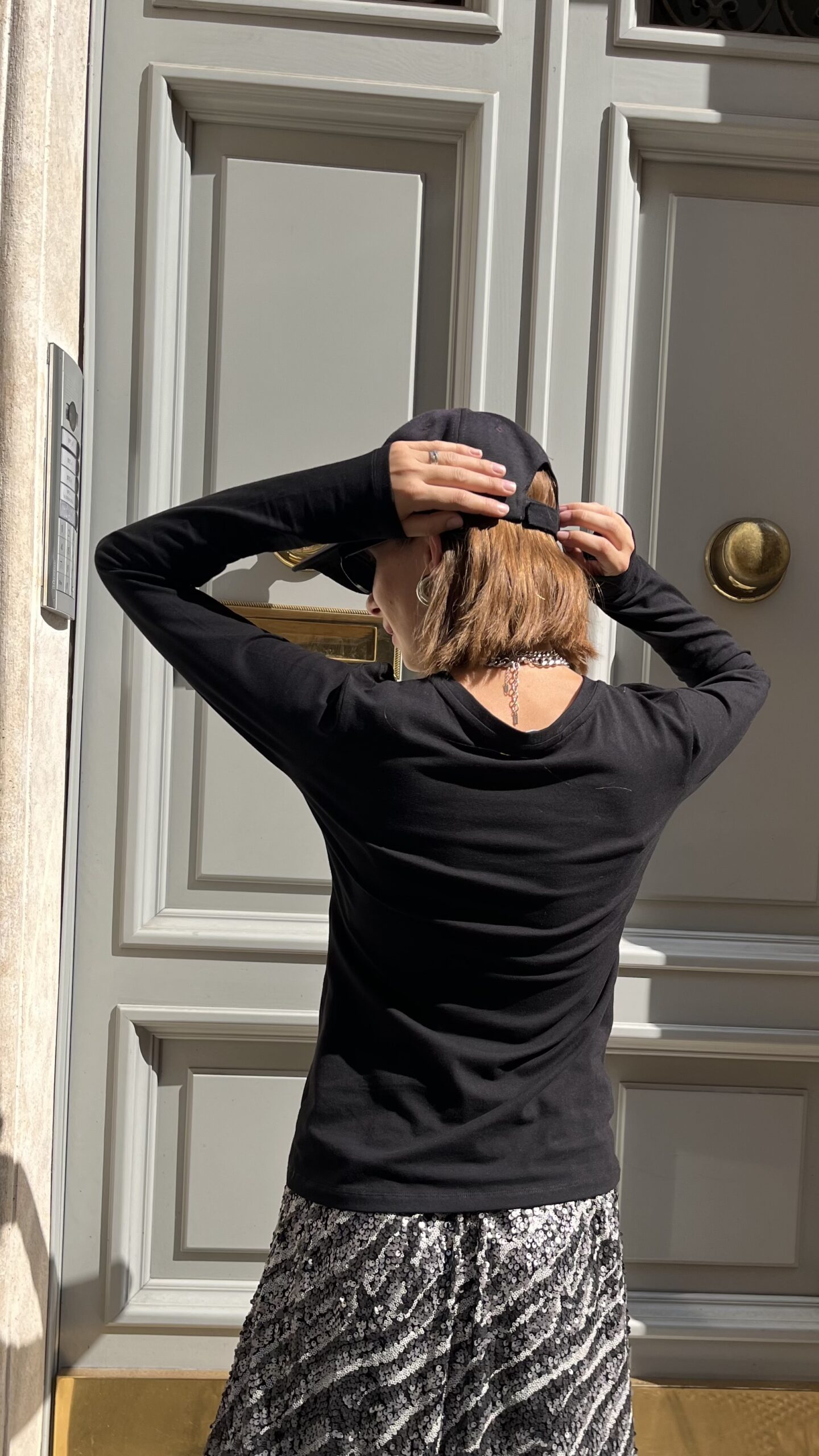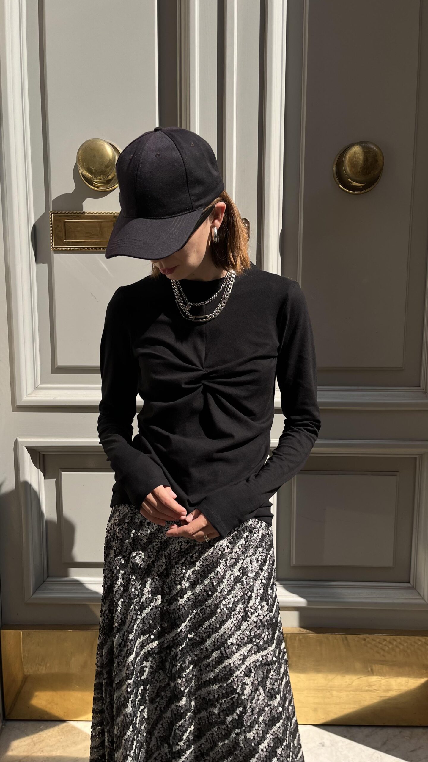 With its long sleeves and versatile design, it serves as an excellent foundation for pairing with a skirt or jacket. This top combines comfort with fashion effortlessly.