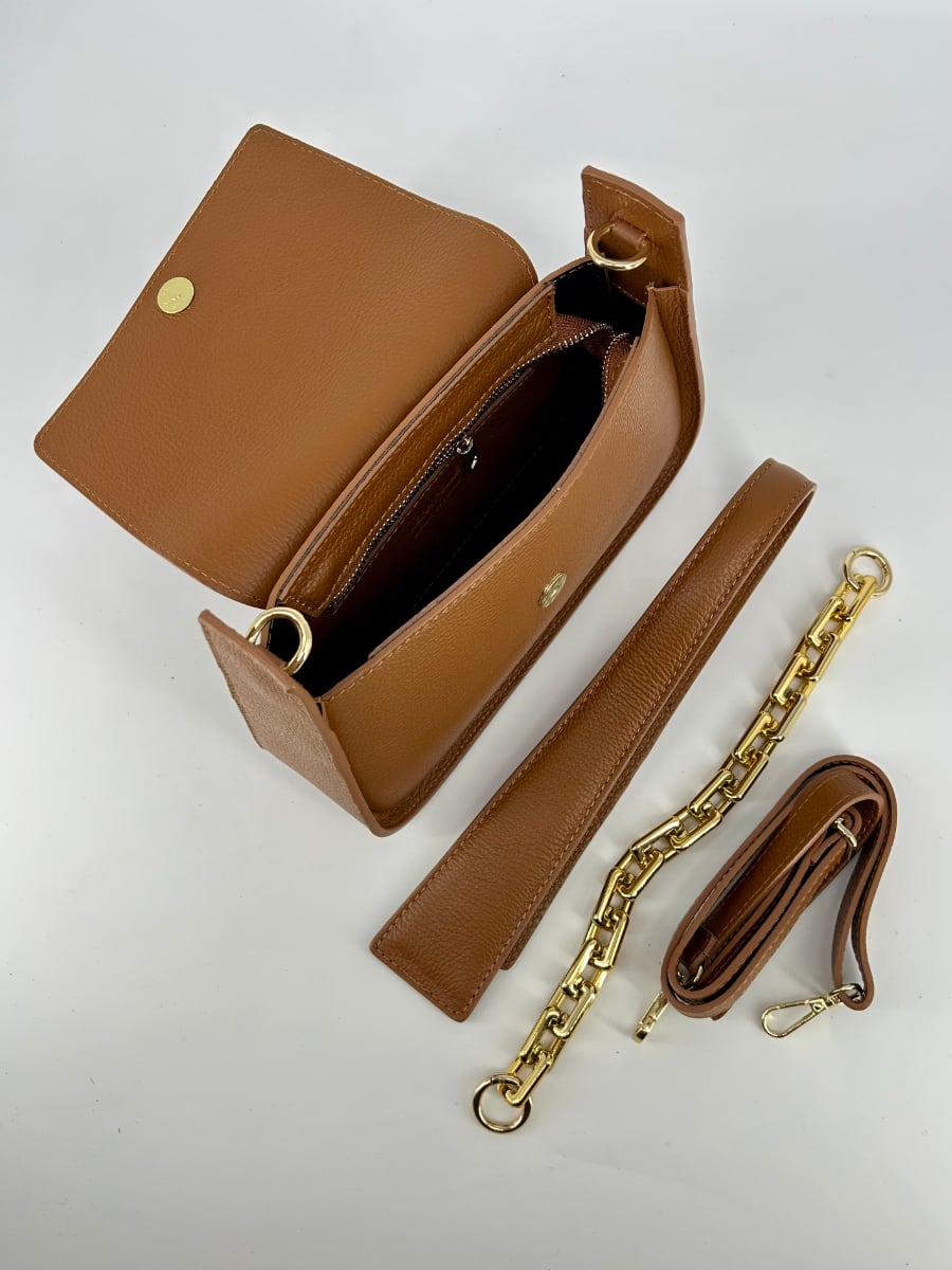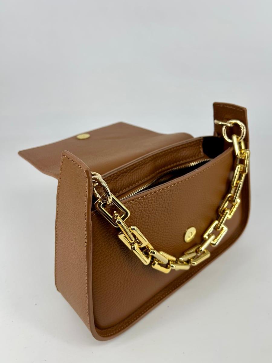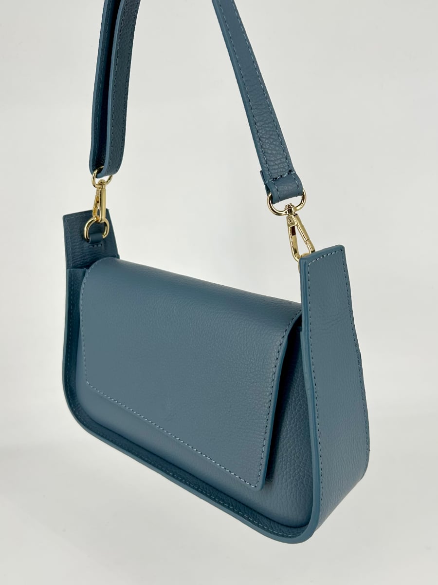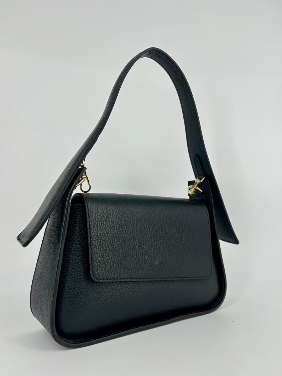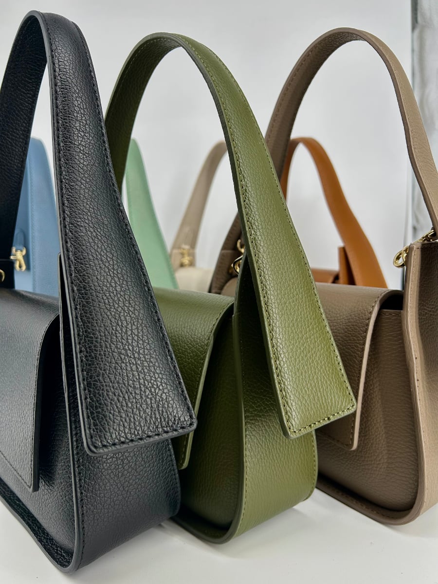 The bag can be carried in the hand as a clutch, on the shoulder, or across the body.