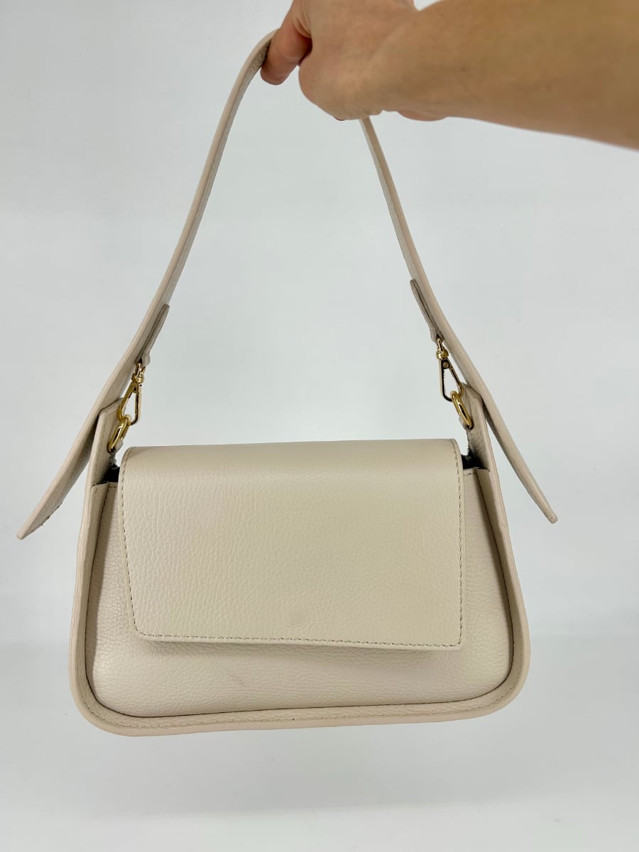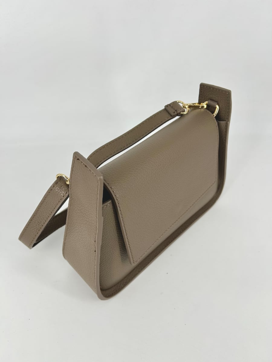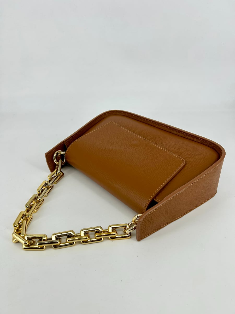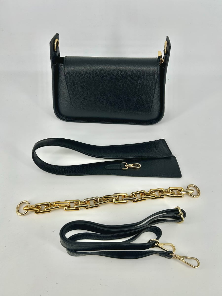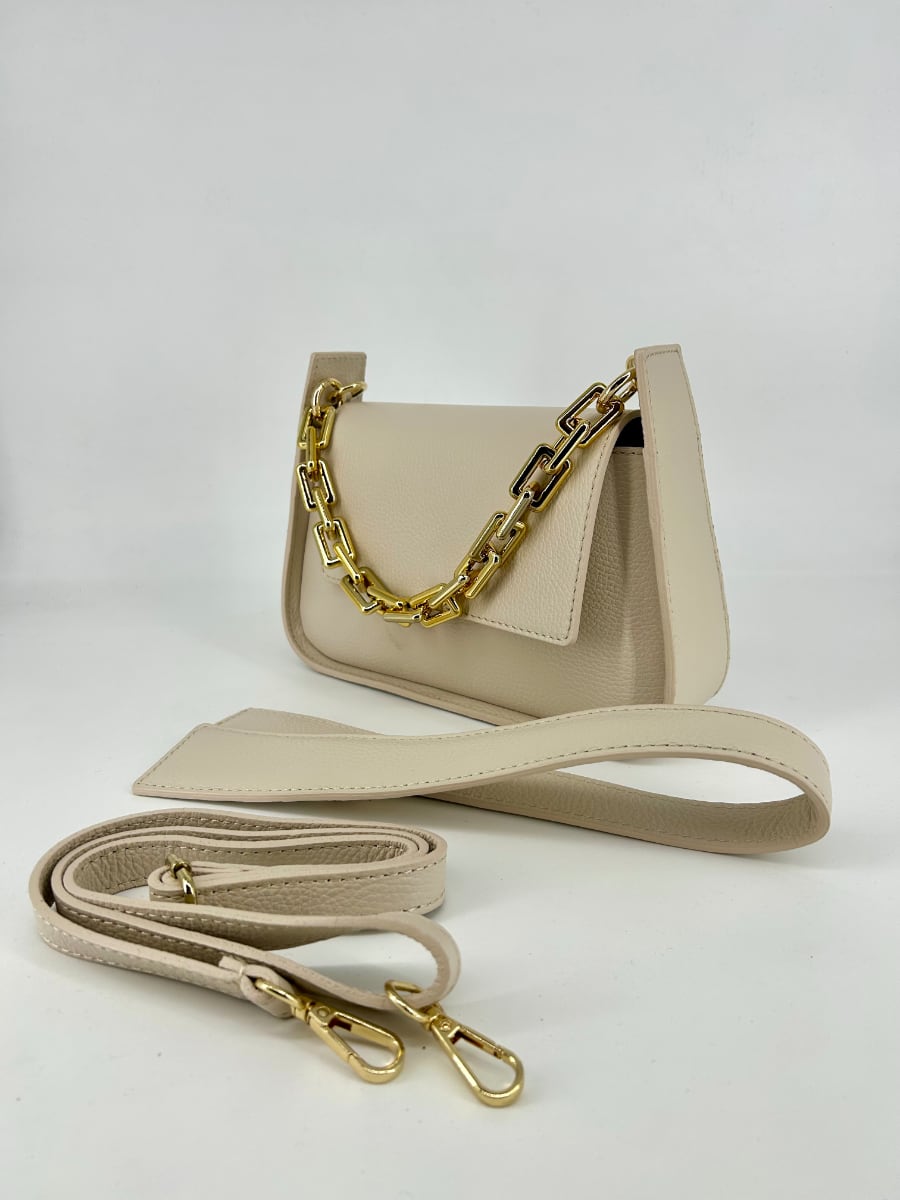 The bag can be carried in the hand as a clutch, on the shoulder, or across the body.