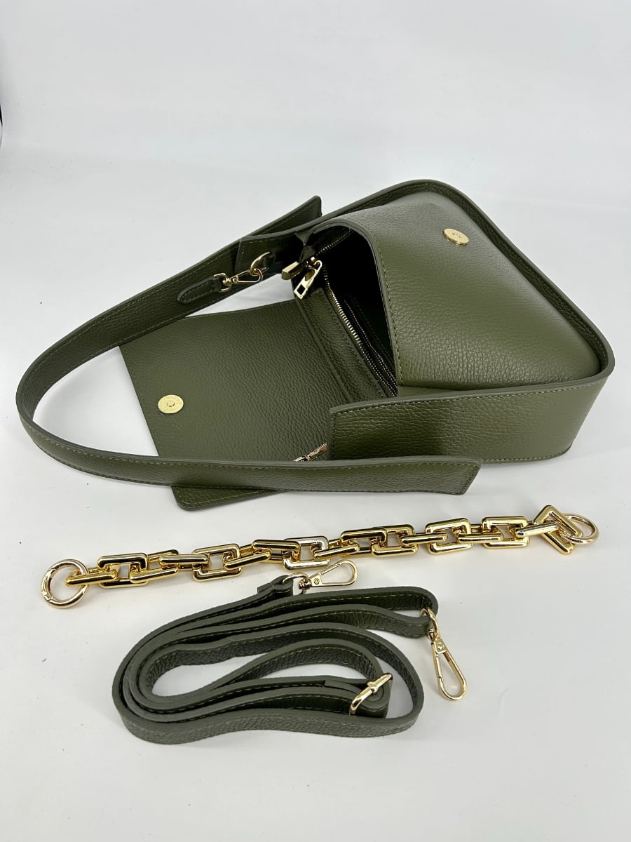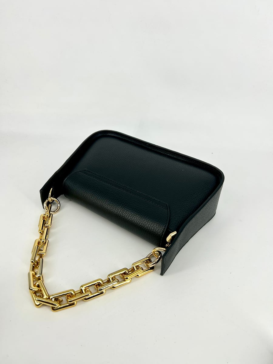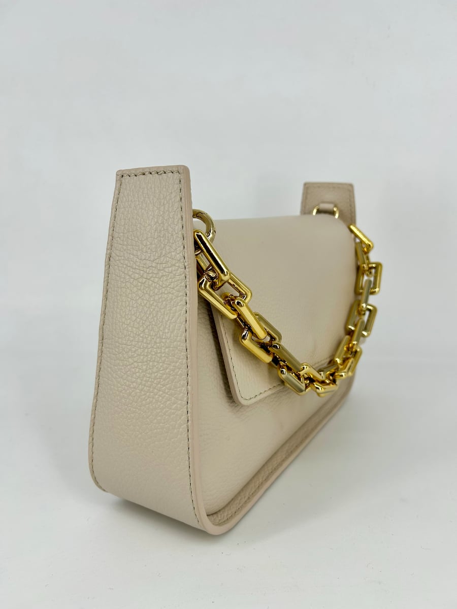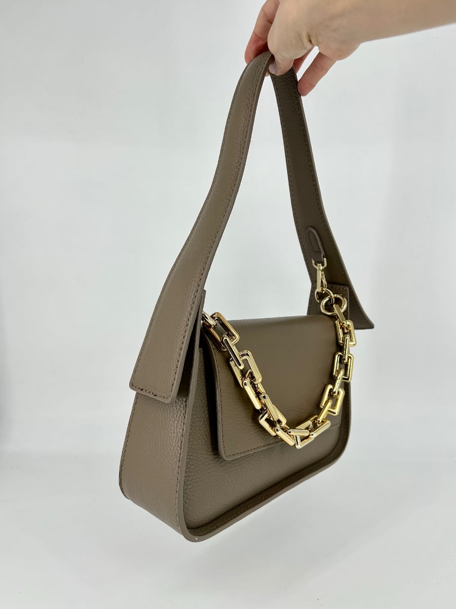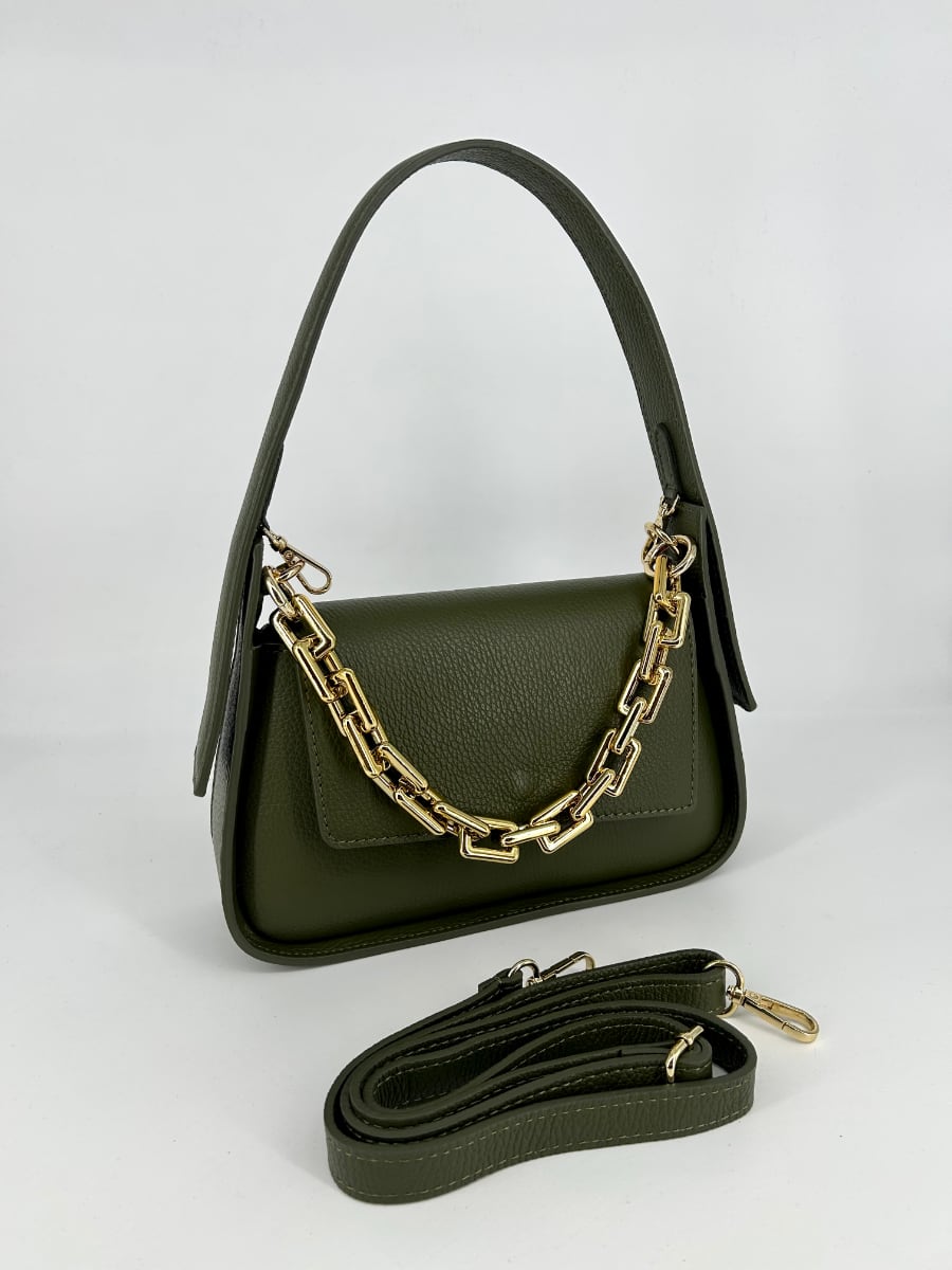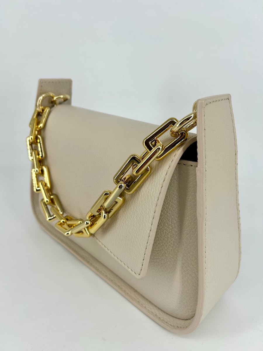 The bag can be carried in the hand as a clutch, on the shoulder, or across the body.