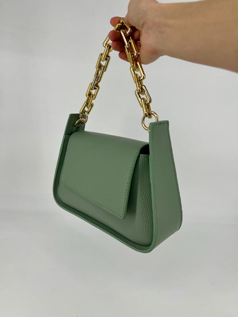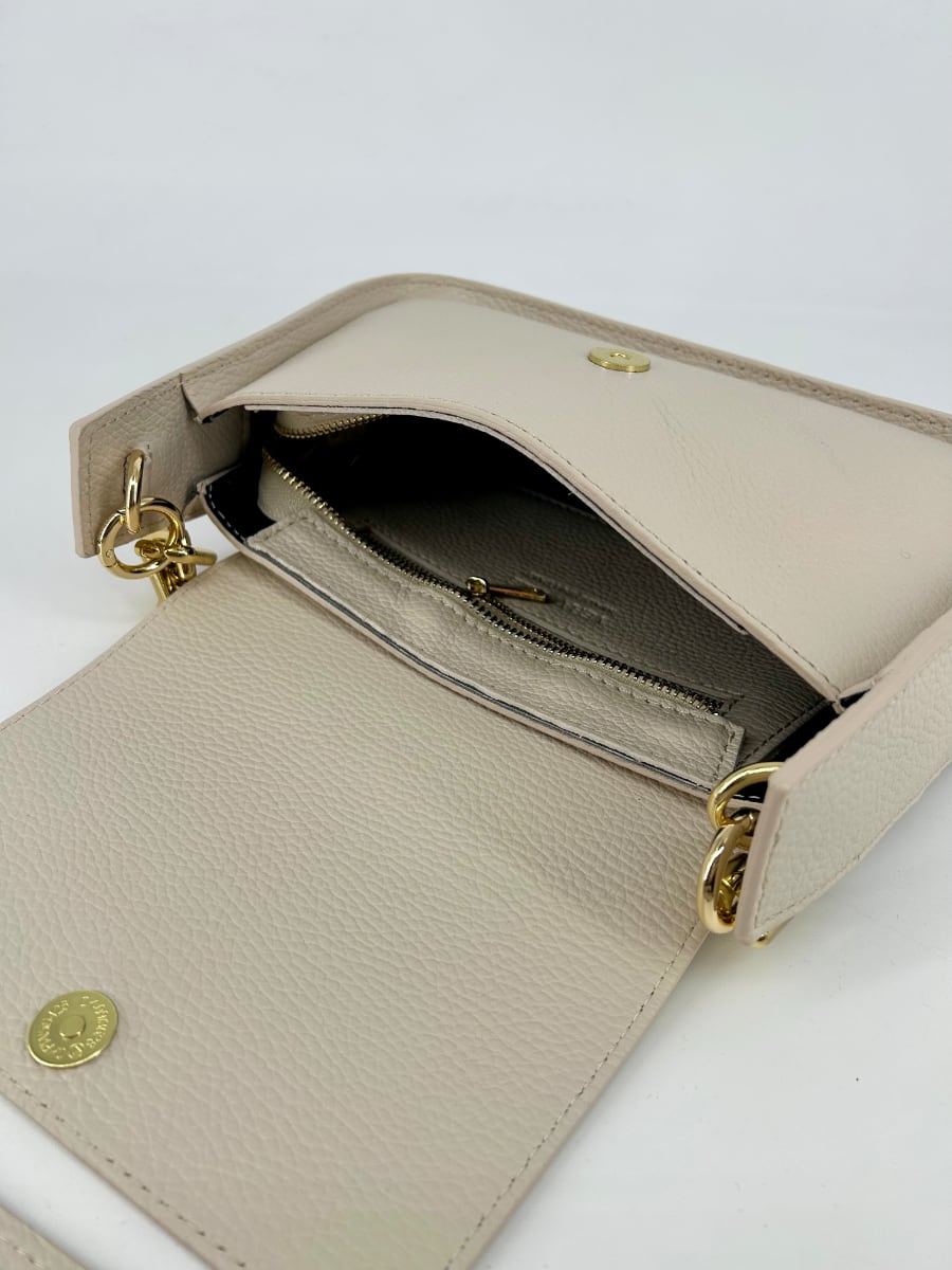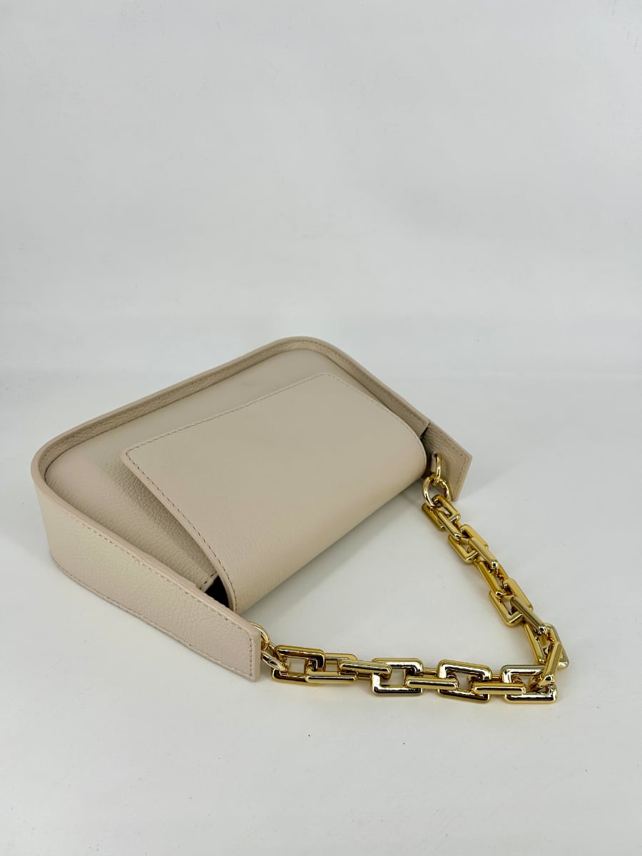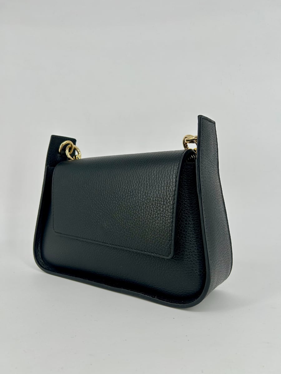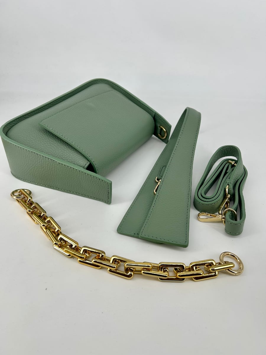 The bag can be carried in the hand as a clutch, on the shoulder, or across the body.